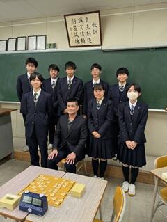 この度は部員内でも話題にのぼっていた憧れの先輩と交流出来る機会にめぐまれた次第です。様々な経験を積まれている先輩に先ずは学生生活のあり方、学業と部活動の向き合い方や進路活動について体験談を講義していただきました。たいへん示唆に富んだ内容で部員たちも感じるところがあったようです。その後は6日、13日とも2面指しで指導対局を受けました。部員たちは自分の得意戦法を試すなどテーマを持って対局に臨み、対局後は対局のポイントを詳細に解説していただき新たな発見を得たようでした。交流会の最後は部員からの質問時間をとっていただき、学校のこと将棋の事をざっくばらんに伺いました。このようにたいへん充実した時間となりました。